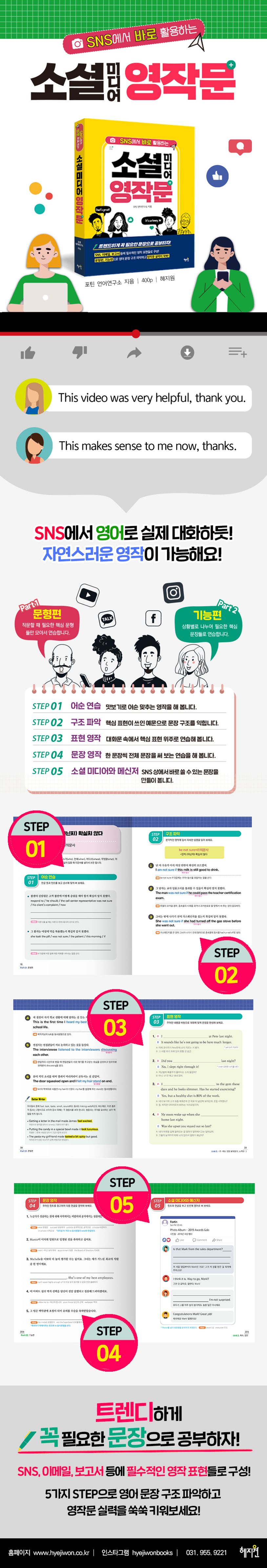 이 책으로 공부한다면 SNS상에서 문장을 쓰는 것도, 읽는 것도 능숙하게 해낼 수 있을 것입니다. 소셜 미디어를 영작문 공부하는 좋은 매체로 활용해 보세요!