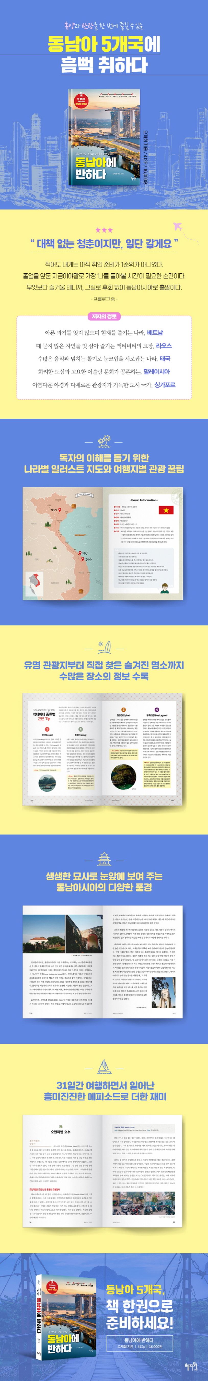스물여섯 청년이 동남아시아를 여행하며 겪은 다양한 에피소드와 관광 정보를 모아 놓은 여행 정보서 겸 여행 에세이다. 여행지는 베트남, 라오스, 태국, 말레이시아, 싱가포르 총 5개국이며 각 나라별, 방문지별 특징과 각종 꿀팁을 깔끔하게 정리하였다. 유명한 관광지부터, 직접 돌아다니며 발견한 숨겨진 명소까지 다양한 장소를 수록하였으며 장소의 주소, 개방 시간, 이용 팁 등을 같이 수록하여 동남아시아 여행을 준비하는 분들께 많은 도움이 될 수 있도록 제작하였다. 또한 작가가 여행 도중 겪은 다양한 에피소드를 수록해 놓아 읽는 재미를 더했다.