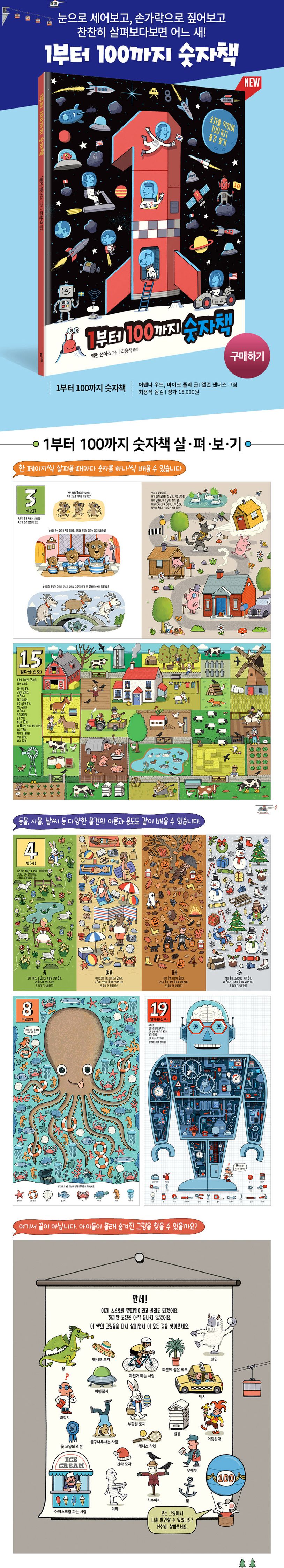 1, 2, 3, 4, 5, 6, 7, 8, 9, 10, 11, 12, 13, 14, 15, 16, 17, 18, 19, 20, 50, 100 숫자를 따라가는 길목마다 여러분은 새로운 이야기 세상을 만나고, 이야기에 빠져 사물이나 사람을 찾다 보면 부지불식간에 숫자를 이해하고 배우게 됩니다.