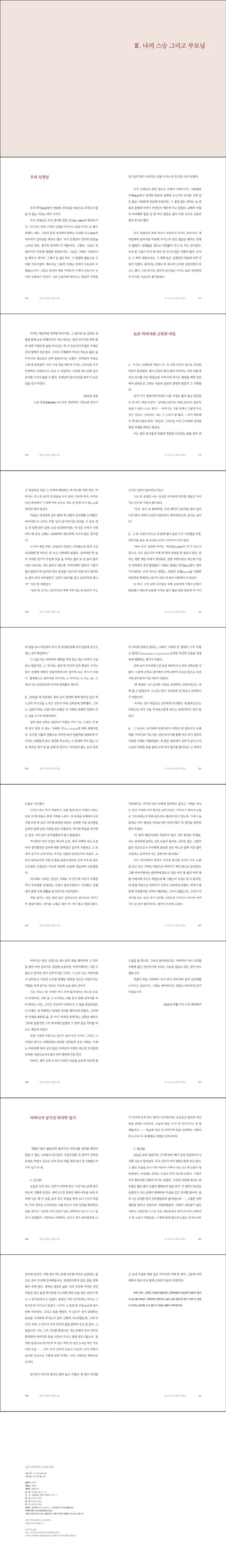 성직 지망자로서는 상상하기 어려울 만큼의 기상천외한 삶을 살았던 마산 교구장 배기현 콘스탄틴 주교의 자전적 에세이와 가르침 모음집. 마산 교구 총대리 시절 저자는 그동안 문제를 일으키며 살았던 지난날들을 의식의 흐름에 따라 되돌아보며 37편의 자전적 에세이를 유머와 재치로 적어 내린다(Ⅰ부). 거기에 주교로서 마음을 담아 정성껏 쓴 교서와 담화문들, 그리고 가장 사랑하는 부모와 스승 이야기들(Ⅱ-Ⅲ부)을 이 책에 담았다. 배기현 주교였기에 가능했던 여러 재미난 일화들은 읽는 이에게 웃음을 선사하며, 시골 본당에서의 따스하면서도 생경한 사목 이야기는 ‘함께 기뻐하고 함께 아파할 수 있는 마음 그것이 곧 영성(靈性spirituality)’임을 깨닫게 해 준다.