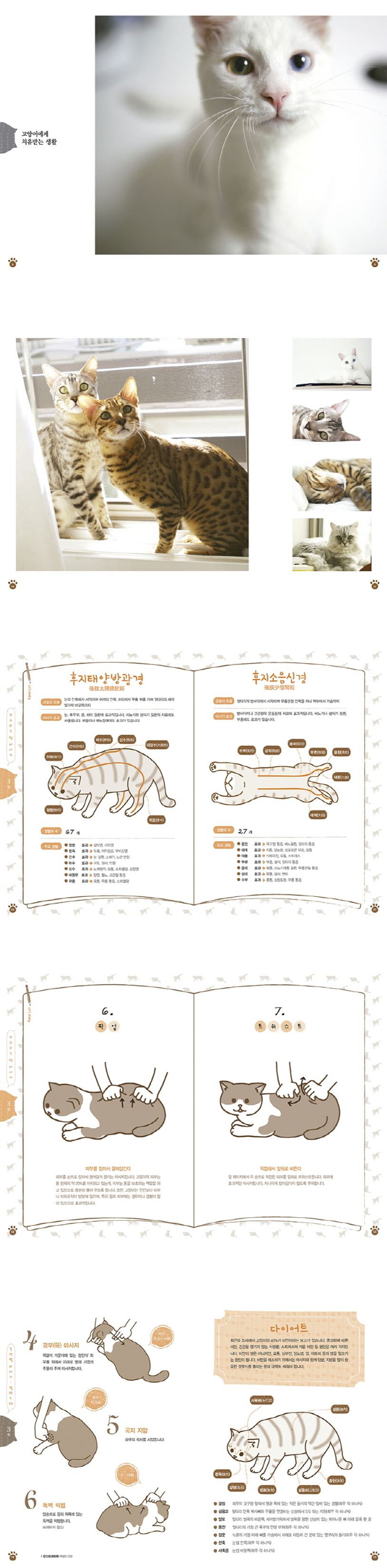 『고양이 마사지』는 고양이가 아프기 전에 건강을 지키는 동시에 스킨십을 통해 반려인과 고양이가 신뢰를 쌓을 수 있는 노하우를 소개한 책이다. 독자의 이해가 쉽도록 일러스트로 해설되어있어서 누구나 쉽게 고양이 마사지를 배울 수 있도록 구성하였다.