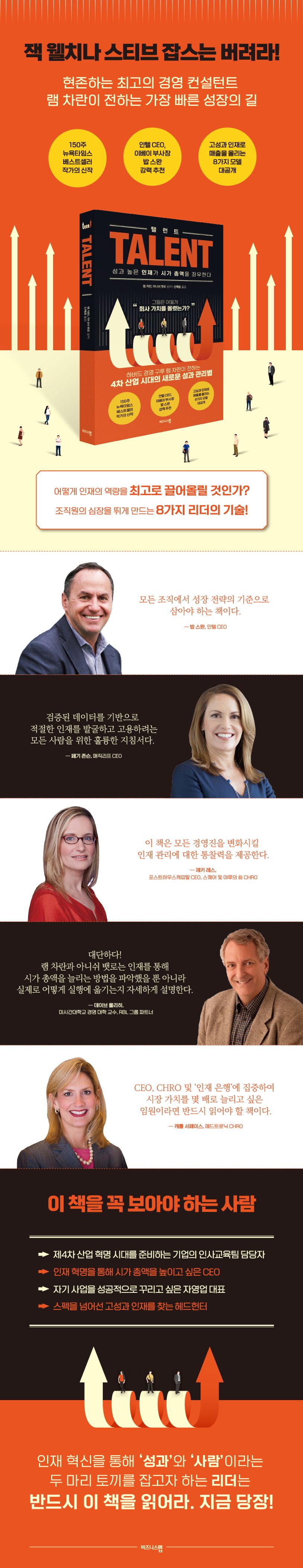 이런 상황에서 경영자들의 가장 큰 고민은 창의적인 인재를 어떻게 구할 것인가, 그리고 어떻게 일 잘하는 팀을 만들 것인가이다. 현존하는 최고의 경영 컨설턴트 램 차란, 사모펀드의 전설 아니쉬 뱃로는 경영자들이 부딪치는 인재 경영 문제에 대해 해답을 제시하기 위해 50여 년간의 경험을 담았다.