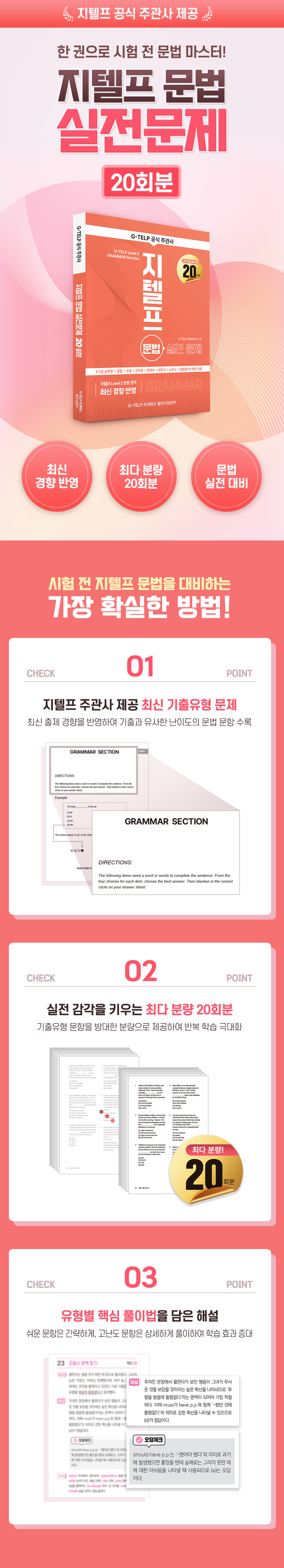 G-TELP 공식 주관사 제공 문법 영역 20회분 최신 기출 유형 문제집!