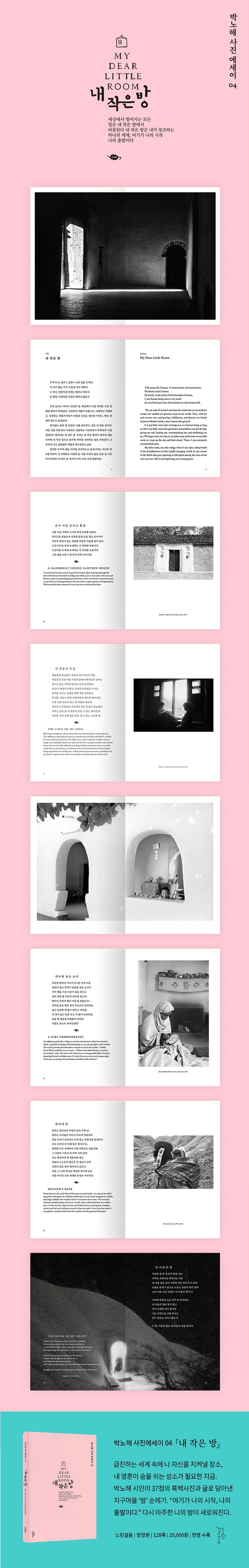 박노해 시인이 지상의 가장 멀고 높은 길을 걸으며 20여 년간 기록해온 유랑노트 〈박노해 사진에세이〉 시리즈. 『하루』, 『단순하게 단단하게 단아하게』, 『길』에 이은 네 번째 이야기 『내 작은 방』은 우리의 일상과 영혼을 ‘방’이라는 포커스로 펼쳐내고 있다. 우리 모두의 첫 번째 방인 엄마의 품에서, 지상에서의 마지막 방인 한 평의 무덤까지. 37점의 흑백사진과 글을 통해 ‘방의 개념’을 드넓은 세계와 깊은 내면으로 확장시켜 사유케 한다.