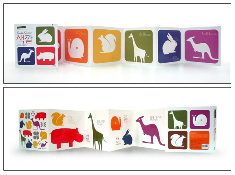 0개월부터 36개월까지의 영아를 위한 「첫 두뇌 계발 그림책」 시리즈 『색깔』. 고급스럽고 감각적 디자인으로 유명한 세계적 홈데코 브랜드인 드웰 스튜디오가, 6개월부터 36개월까지의 영아를 위해 만든 색깔 그림책이다. 한장씩 넘기며 보여줄 수 있을뿐 아니라, 펼쳐서 세워놓을 수 있도록 병풍처럼 만들었다. 빨간색, 노란색, 초록색 등의 색깔에 대해 익힐 뿐 아니라, 달팽이, 토끼, 캥거루 등의 동물을 만나게 된다. 인지력을 향상시키면서 두뇌 계발을 촉진할 수 있다. 아울러 색깔과 동물의 이름을 한글과 영어로 담아내 어휘력을 향상시키는 데에도 유용하다. 그림 부분은 도톰하게 만들어 촉감을 발달시킨다.