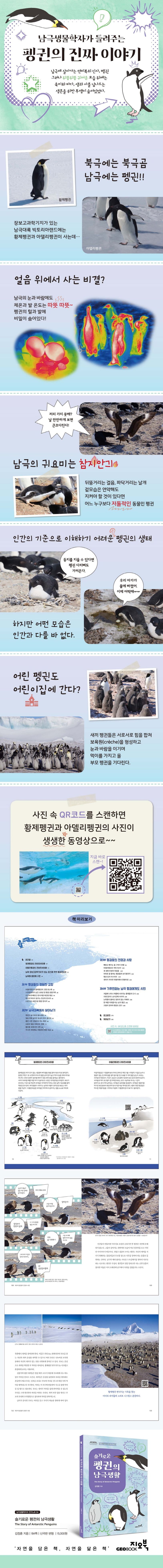 또한 육지, 바닷속, 상공에서 찍은 사진은 펭귄이 삶과 죽음을 가감 없이 보여준다. 남극 연구자가 아니면 촬영할 수 없는 귀한 동영상도 책에 함께 담겨있다.