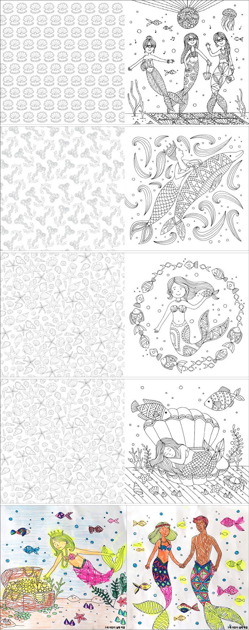 한 번에 다 그리려는 생각보다는 가까이 두고 차분히 그림을 그리고 싶을 때 꺼내 찬찬히 색칠해 보기를 권합니다. 한번 그렸더라도 두 번, 세 번 다양한 재료로 구석구석 아름답게 꾸며 나가다 보면 친구, 선생님, 부모님께 자랑스럽게 선물할 수 있는 나만의 멋진 인어공주 작품이 탄생한답니다. 자, 그럼 첫 번째 그림부터 시작해 볼까요?