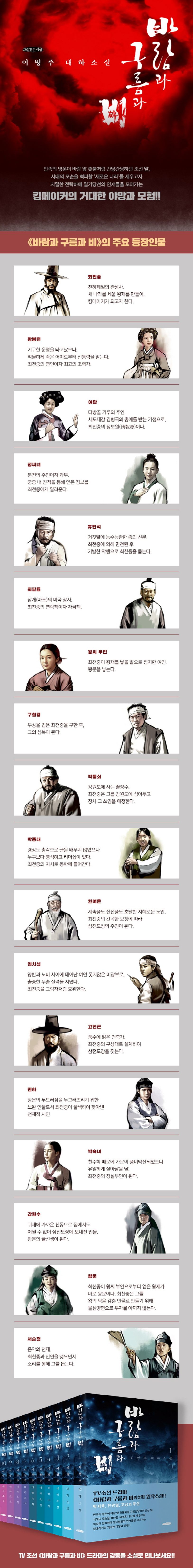 《바람과 구름과 비碑》에 등장하는 수많은 인물들 중 최천중 휘하에 모여드는 이들은 하나같이 혁명가로 될 태생 적 기질을 품고 태어났다. 하룻밤 자고 나면 권력의 풍향이 뒤바뀌는 난세에 역모나 사화에 연루되어 일문이 떼 죽음을 당하면서 천재일우로 혼자 살아남았거나, 천주학 혹은 동학에 연루되어 다른 식구들은 죽고 혼자만 목숨 을 부지했던 경우가 대부분이다.