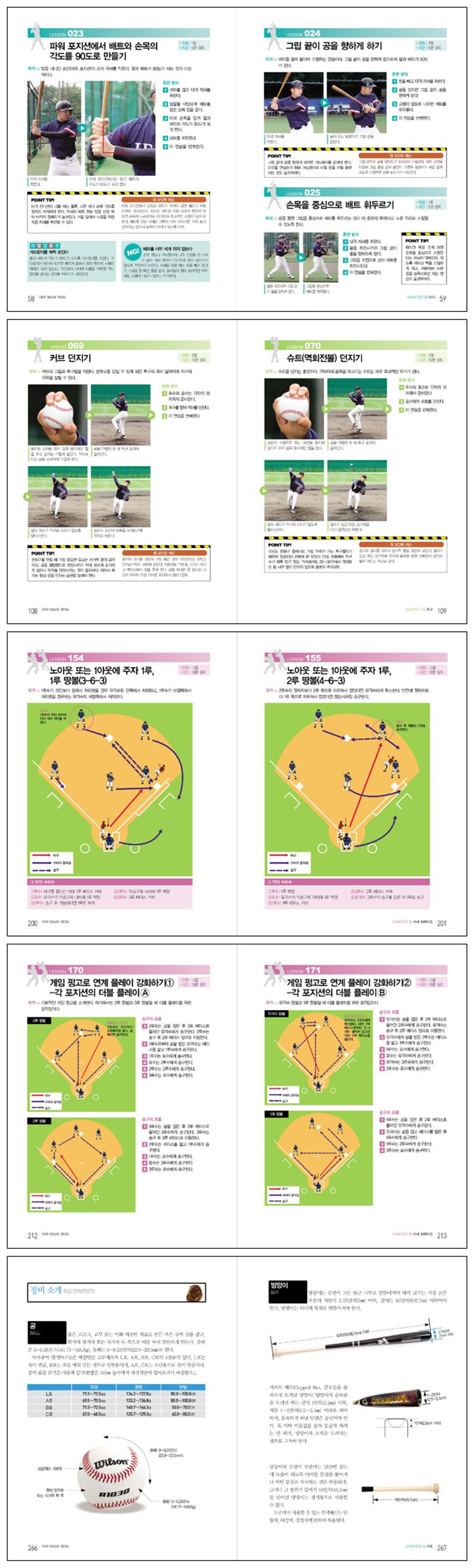 프로야구선수들이 야구 기술을 습득하기 위해 실천하는 연습법을 엿볼 수 있다. 요미우리 자이언츠의 훈련법도 공개한다. 아울러 코치를 꿈꾸는 사람들을 위해 코칭 기술을 담아냈다. 부록으로는 야구용어 등을 익힌다. 특유의 리더십으로 세계에 한국야구를 알리는 데 공을 세우면서 국민감독이 된 한국야구위원회 기술이원장 김인식이 감수했다.