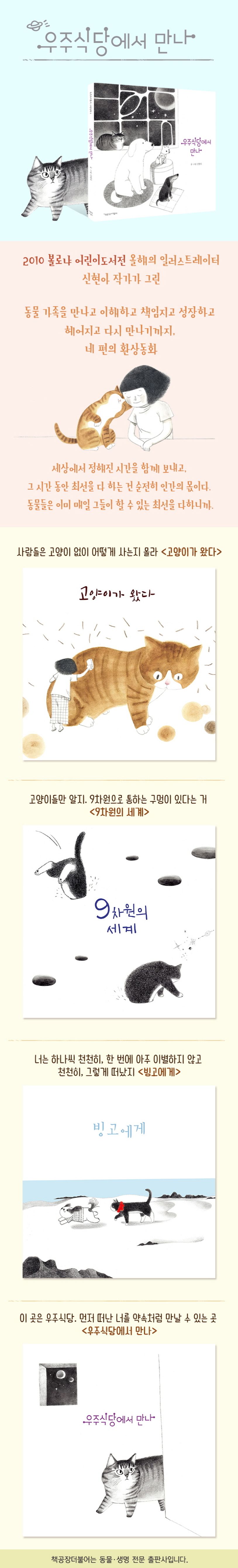 우주식당은 죽음 이후에 가는 첫 번째 장소인데 먹기만을 위한 곳은 아니다. 먼저 떠난 동물들이 인간을 마중 나오는 곳. 그러니까 아이들이 떠나면서 알려주는 우주식당의 위치를 잘 기억해 두고 있어야 한다.