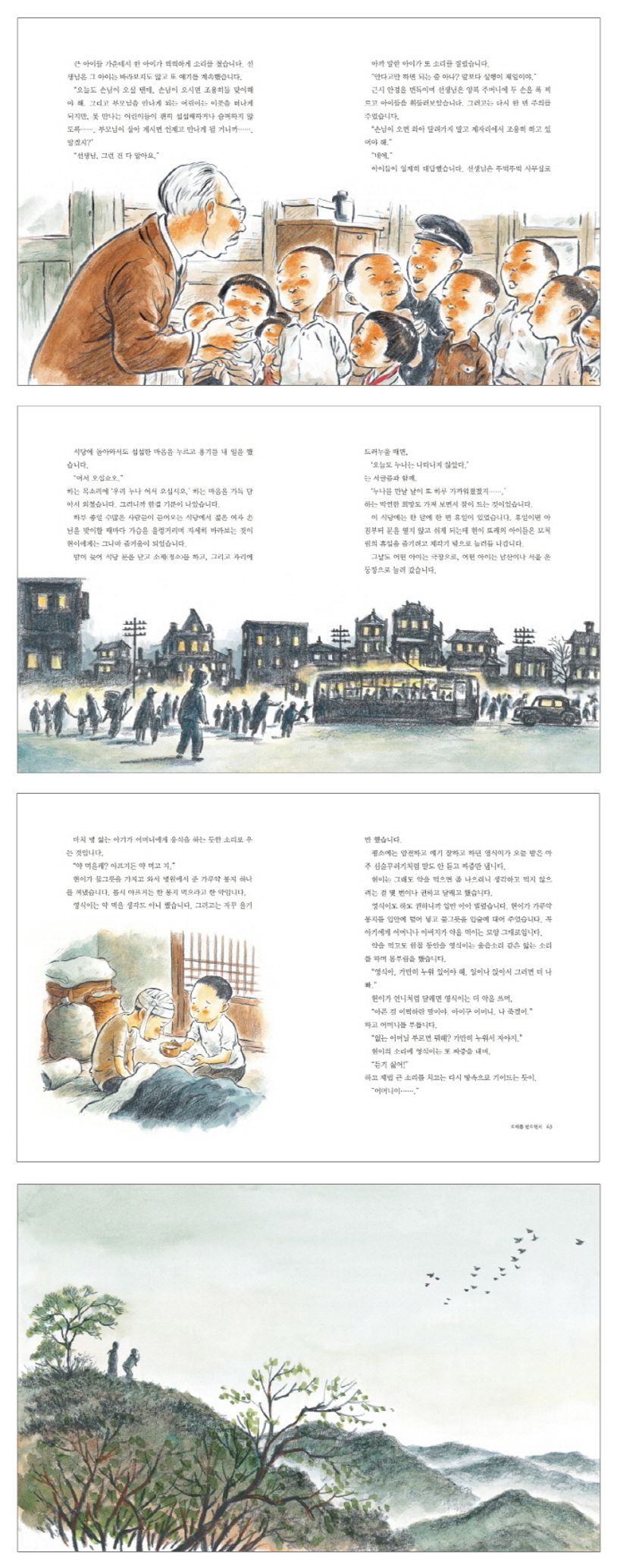 현이는 한국전쟁 중에 부모를 잃은 데다가, 누나와 헤어지게 되었어요. 누나를 찾기 위해 고아원을 몰래 도망 나와 오갈 곳이 없던 현이는 김 경사의 도움으로 한 식당에서 일을 하게 되었어요. 현이는 자신처럼 부모가 없는 영식, 경희 등의 친구들이 있는 식당에서 생활했어요. 아이들은 어른들의 보호를 받을 수 없는 환경 속에서 서로 의지하며 우정을 쌓아가는데…….