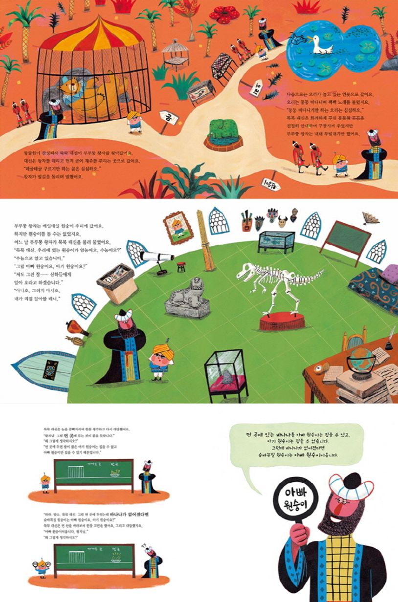 생각하고 궁리하는 힘을 어린이 눈높이에서 보여주는 사고력 그림책 「알이알이 호기심그림책」제3권 『누가 바나나를 가져갔을까』. 조용하다 못해 지루하기까지 한 나라, 잔잔 왕국. 시무룩 왕은 늘 심심해하는 왕자를 위해 화려한 동물원을 만들어 줍니다. 하지만 기대와 다르게 동물들을 보아도 시시하다고만 하는 부루퉁 왕자. 그런데 단 한 곳, 원숭이 우리에서 눈을 떼지 못하는데, 그 이유는 원숭이 우리 안에 원숭이가 없었기 때문입니다. 원숭이의 정체를 확인할 방법을 생각해 내는 부루퉁 왕자는 문제를 4단계의 사고 유형을 가지고 차근차근 풀어 나갑니다. 이를 통해 생각의 즐거움을 깨닫게 하고, 생각하는 힘을 길러 줍니다.