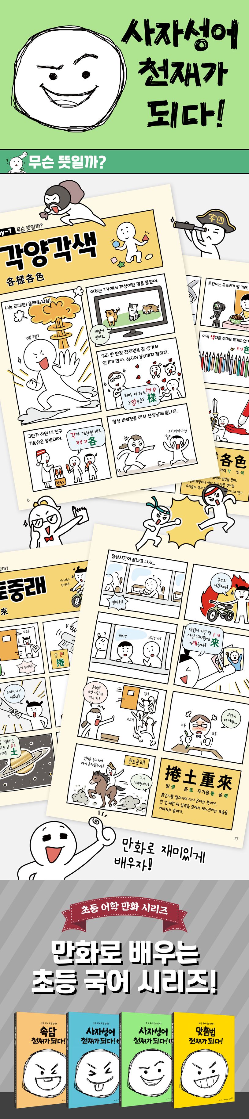 놀면서 재미있게 배우는 사자성어! 『사자성어 천재가 되다!』는 아이들이 사자성어를 재미있는 ‘놀이’로 배울 수 있도록 만든 책이다. 흥미진진한 만화 속에 사자성어를 녹여냈다. 아이들에게는 ‘재미’가 중요하다. 일단 재미를 느끼면, 능동적인 학습이 가능해지기 때문. 능동적으로 습득한 지식들은 머리에 더욱더 오래 남게 된다. 아이에게 읽는 즐거움과 배우는 즐거움을 알려주자. 『사자성어 천재가 되다!』와 함께라면 우리 아이도 천재가 될 수 있다.