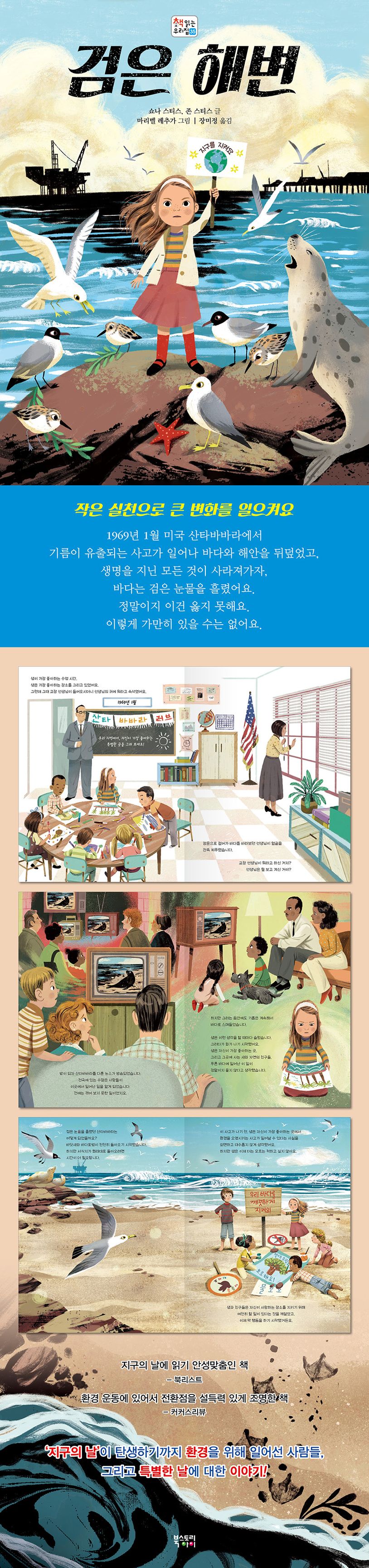 1월 1일은 설날, 5월 5일은 어린이날, 그렇다면 4월 22일은 무슨 날일까? 바로 환경을 위한 기념일, ‘지구의 날’이다. 1970년 4월 22일에 미국에서 만들어진 ‘지구의 날’은 50여 년이 지난 현재, 수십 억 명이 기념하는 전 세계적인 행사가 되었다. 이 ‘지구의 날’이 어떻게 만들어졌는지를 알려주는 환경 그림책 『검은 해변』이 북스토리아이 출판사에서 출간되었다.