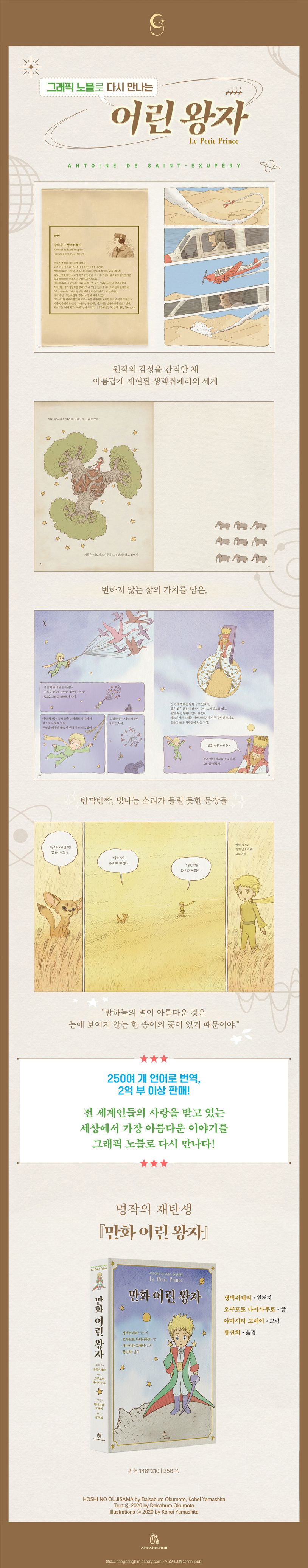 프랑스 현대문학의 고전으로, 어른과 아이 모두에게 꾸준히 사랑받는 생텍쥐페리의 『어린 왕자』가 상상의힘에서 만화로 출간되었다. 이 『만화 어린 왕자』는 원작을 만화로 만들기 위해 심하게 각색하거나 재구성하지 않았다. 원작 속 그림 역시 빠짐없이 충실히 옮겼다. 저자들의 원작에 대한 존중과 사랑이 엿보이는 부분이다.