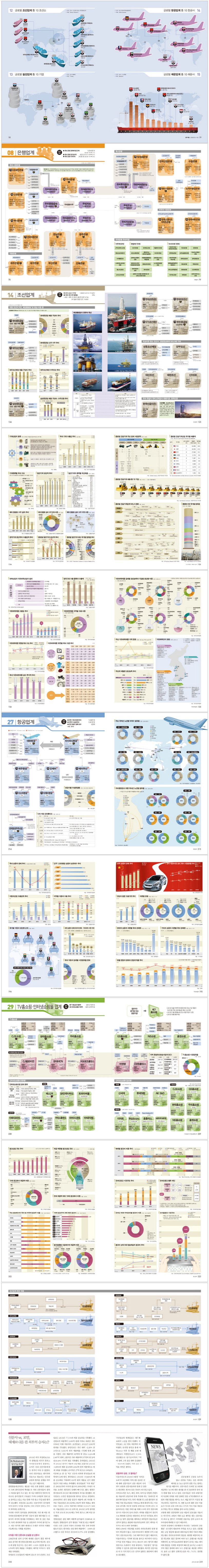 이 책의 마주보는 두 페이지 안에는 업계 순위, 경영실적, 출자관계, 계열사, 사업 구성, 업계 주요 이슈 등 비즈니스 정보들이 담겨 있다. 각각의 정보를 담은 그래픽들은 유기적으로 연결되며 시장의 흐름을 압축적으로 보여준다. 또한 해양 플랜트의 종류와 특성, 글로벌 건설기계업계 M&A 현황 등 업종 이해의 밑바탕이 될 산업구조와 개념을 충실히 설명한다.