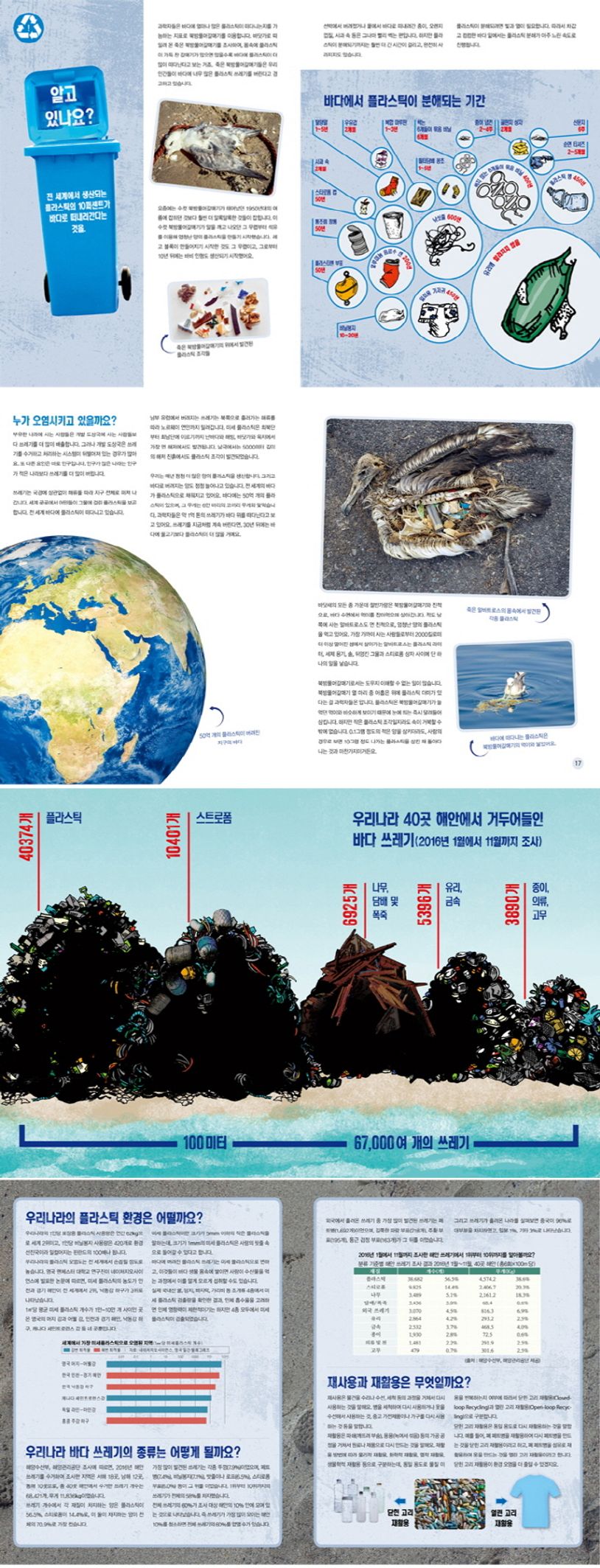 이 책은 바다에 플라스틱이 어떻게 버려지고 얼마나 버려지는지, 플라스틱에 어떤 독성 물질이 있는지, 그로 인해 바다 동물이 얼마나 고통받고 있는지를 생생한 사진과 함께 보여 줌으로써 우리 어린이들이 플라스틱 쓰레기의 심각성을 명확히 인식하고 깨닫게 해 줍니다. 아울러 플라스틱 문제를 더 이상 어른이나 정부에만 맡기지 말고 우리 한 사람 한 사람이 어떻게 해야 하는지를 제시하여 생활에서 실천할 수 있도록 도와줍니다.