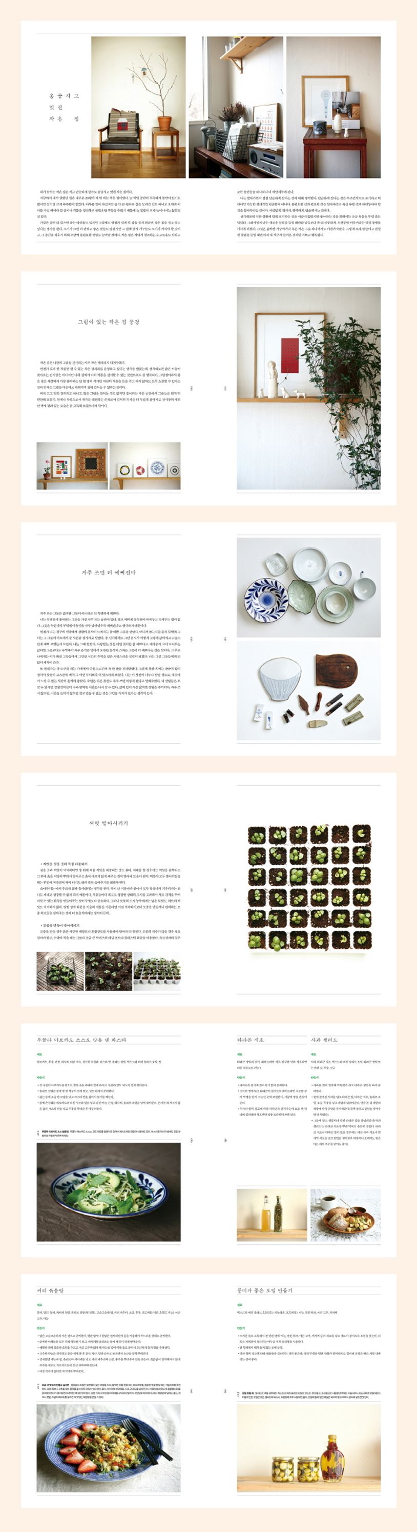 시멘트로 덮인 작은 마당이지만 토분과 텃밭 상자를 두어 울창한 텃밭을 꾸미고, 가장 좋아하는 그릇은 제일 눈에 띄는 곳에 두어 자주 사용하며, 빈 벽에는 선반을 걸어 좋아하는 물건과 자신만의 그림으로 작은 아틀리에를 꾸며두고, 작은 숟가락 하나일지언정 고심하며 들여서 오래 매만지고 아껴주는 집, 화가 박현정의 ‘작아서 더 아름다운’ 집 이야기를 담은 『작은 집 작은 살림』에서 만나볼 수 있다.