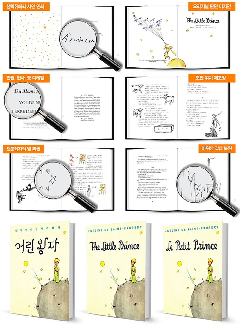 1943년 발행된 초판본의 디자인을 그대로 재현한 『Le Petit Prince(르 쁘띠 프랭)(어린왕자 프랑스어판)』. 사하라 사막에 불시착한 주인공이 머나먼 별에서 온 어린왕자를 만나고 8일 밤낮동안 어린왕자가 들려주는 이야기를 통해 아이들의 눈에 비친 어른들의 어리석은 모습을 돌아보게 하는 작품이다. 생텍쥐페리가 사하라 사막 한가운데 홀로 불시착했을 때 만난 어린왕자와의 추억을 간직하고자 그린 사십여 점의 그림까지 함께 만나볼 수 있다.