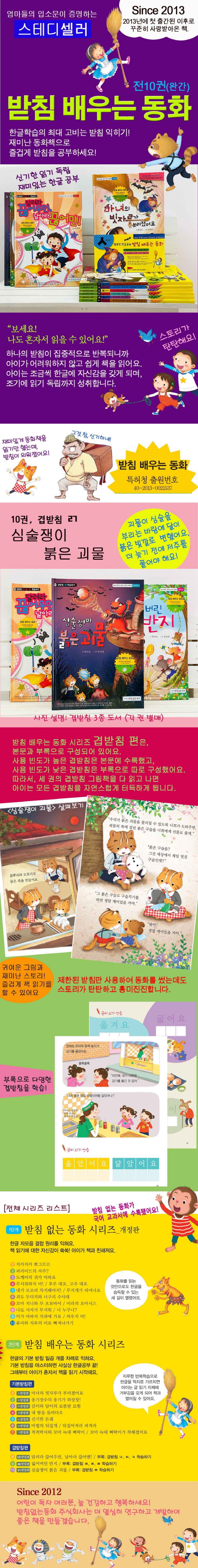 배우는 동화 시리즈 제10권 『심술쟁이 붉은 괴물』. 한글학습의 최대 고비는 받침 익히기! 재미난 동화책으로 즐겁게 받침을 공부할 수 있도록 구성되어 있다. 하나의 받침이 집중적으로 반복되니까 아이가 어려워하지 않고 쉽게 책을 읽어요. 아이는 조금씩 한글에 자신감을 갖게 되며, 조기에 읽기 독립까지 성취할 수 있어요.