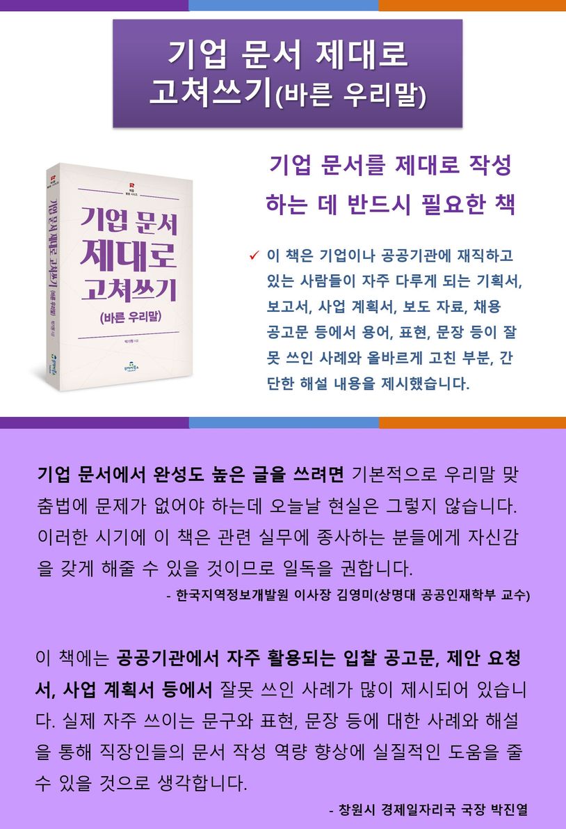 이 책과 인연을 맺은 분들이 기업 문서를 우리말 어법에 맞게 그리고 우리말답게 쓰는 데 도움이 되었으면 합니다.