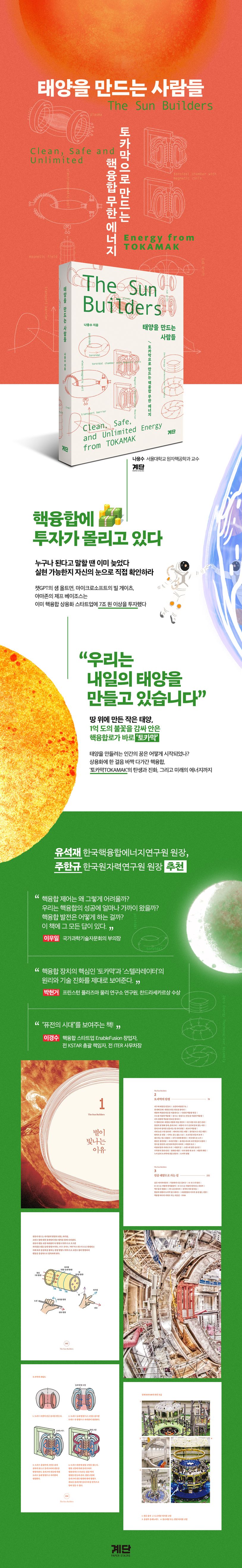 핵융합 연구를 시작한 지 채 오십 년이 되지 않은 우리나라는 지난 이십여 년간 실력 있는 연구자들과 꾸준한 투자로 초전도 핵융합로인 KSTAR를 만들었다. 이제는 KSTAR에서 전 세계가 주목하는 놀라운 실험 결과를 연달아 내놓고 있다. 이 책에서는 이런 우리나라 핵융합 연구의 발자취와 앞으로의 미래까지 빠짐없이 살펴본다.