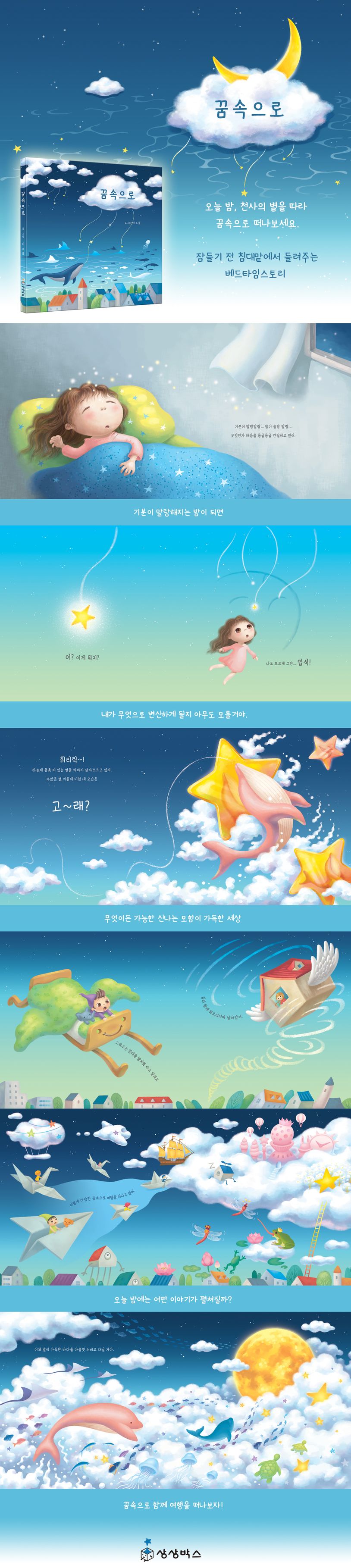 〈꿈속으로〉는 쉽게 잠에 들지 못하는 아이들을 천사들이 꿈별 낚시로 낚아, 꿈속 모험으로 초대하는 이야기입니다. 이 책을 읽으며 아이들의 마음속에 꼭꼭 숨겨두었던 무한한 꿈의 세상 속으로 여행을 떠나보면 어떨까요?