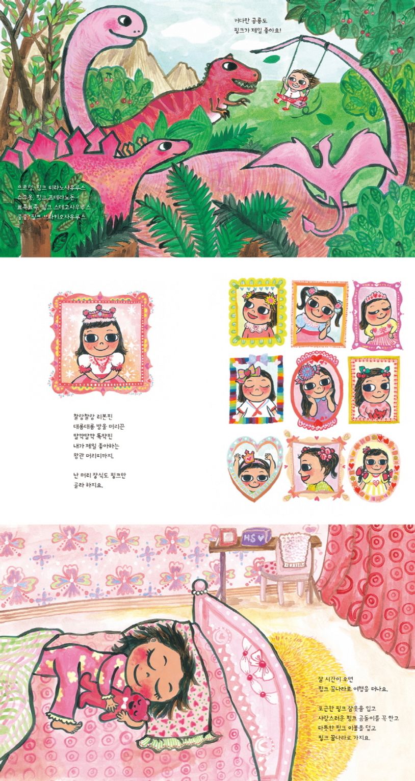 『난 핑크 공주야!』는 핑크를 너무나 좋아하는 여자아이의 무한한 상상력을 보여주는 그림책입니다. 이 책은 어린 시절 핑크에 푹 빠진 딸을 길렀던 저자가 이제는 자라버린 아이를 바라보면서 과거를 추억하며 지은 이야기로 아이들의 핑크 세상을 그들의 시선으로 함께 바라봐주고, 그 세상을 만든 아이의 상상력을 축복하고자 하는 마음이 담겨 있습니다.