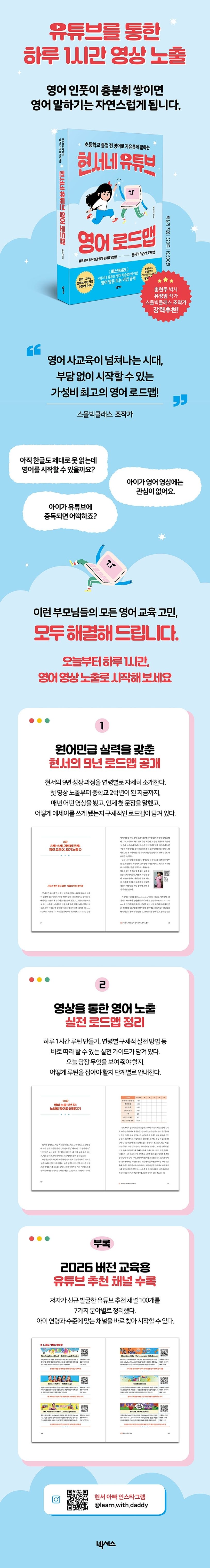 36개월부터 영어를 모국어처럼 습득하는 〈현서네 유튜브 영어 학습법〉을 통해 유튜브 영어 학습의 붐을 일으켰던 현서네 이야기가 더욱 강력해진 실전 지침서로 돌아왔습니다. 전작인 〈현서네 유튜브 영어 학습법〉이 영어를 자연스럽게 습득하는 '입문편'이었다면, 이번 도서는 습득을 넘어 원어민 수준의 유창성을 완성하기까지의 9년 여정을 담은 '완성편'이라고 할 수 있습니다.