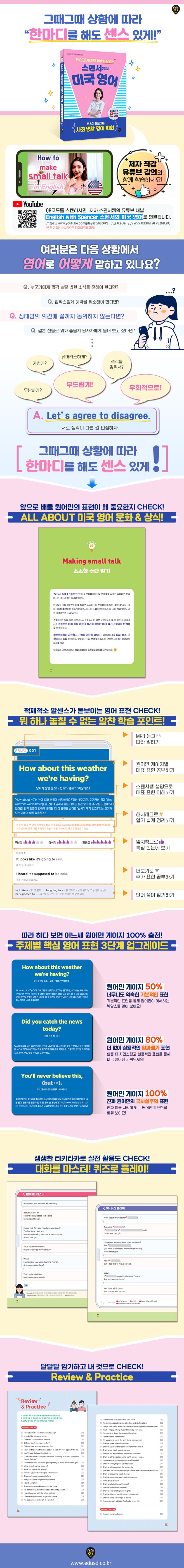 교재의 내용을 저자의 유튜브 채널 〈English with Spencer 스펜서의 미국 영어〉 동영상 강의 콘텐츠로도 시청할 수 있게 되어 있어 ‘교재+강의=2배의 학습 효과’를 누릴 수 있습니다.