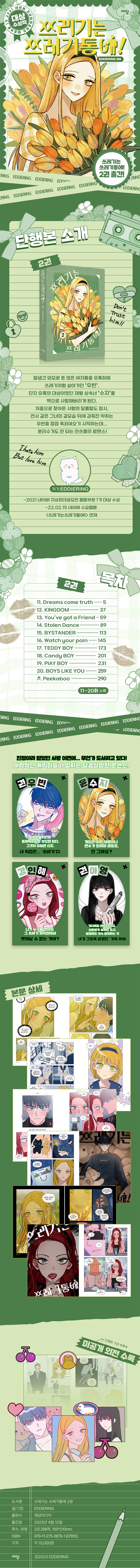 2021 네이버 지상최대공모전 웹툰부문 1기 대상 수상작으로, 작품성과 대중성을 골고루 갖춰 연재 초부터 뜨거운 관심을 받고 있는 EDDiRiNG(에디링) 작가의 〈쓰레기는 쓰레기통에!〉 단행본이 정식 출간됐다. 이번 단행본은 시즌1(1~46화)의 모든 내용을 고스란히 담고 있으며 단행본의 완성도를 위해 많은 가필과 수정이 이루어졌다. 또한 단행본 특전으로 각권마다 미공개 외전이 한 편씩 수록되었으며, 버라이어티한 굿즈로 한정판을 구성해 소장가치를 더하려 노력했다.