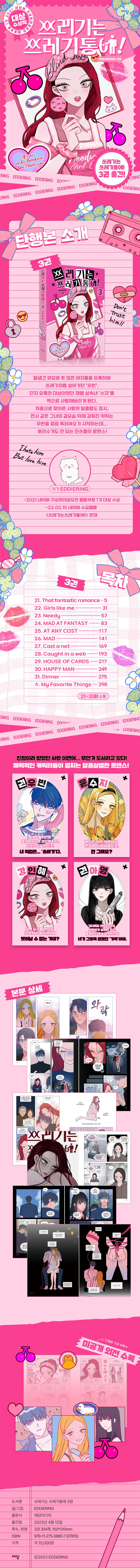 2021 네이버 지상최대공모전 웹툰부문 1기 대상 수상작으로, 작품성과 대중성을 골고루 갖춰 연재 초부터 뜨거운 관심을 받고 있는 EDDiRiNG(에디링) 작가의 〈쓰레기는 쓰레기통에!〉 단행본이 정식 출간됐다. 이번 단행본은 시즌1(1~46화)의 모든 내용을 고스란히 담고 있으며 단행본의 완성도를 위해 많은 가필과 수정이 이루어졌다. 또한 단행본 특전으로 각권마다 미공개 외전이 한 편씩 수록되었으며, 버라이어티한 굿즈로 한정판을 구성해 소장가치를 더하려 노력했다.