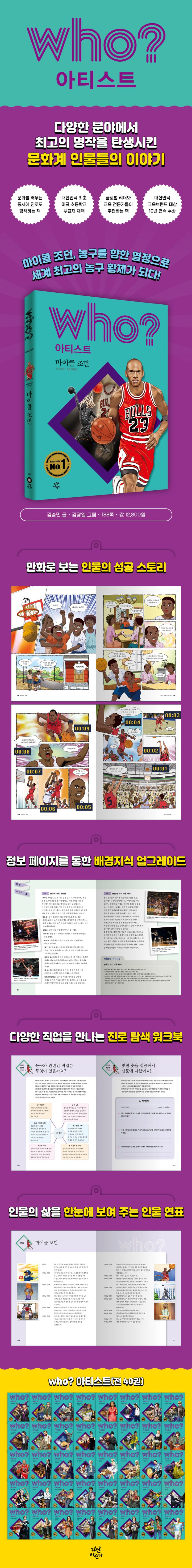 자기 이해와 직업 세계 이해, 진로 설계 등 진로 탐색 단계별 활동을 담은 어린이 진로 탐색 코너는 농구 선수라는 마이클 조던의 직업 세계를 더 깊이 이해하고 독자 스스로 자신의 진로를 탐색해 볼 수 있도록 해 줍니다.