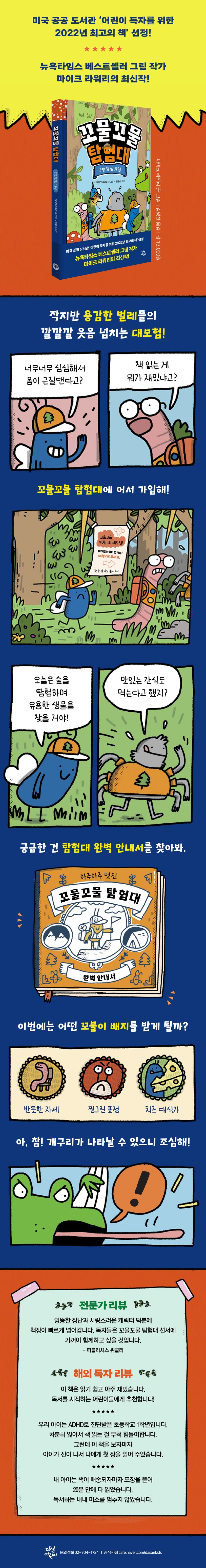 작지만 용감한 꼬물꼬물 탐험대원들을 따라 모험하다 보면 어린이 독자들은 나다운 모습을 깊이 사랑하고, 친구의 다양한 모습을 진정으로 받아들이며 마음을 넓힐 수 있을 것이다. 또한 생각지 못한 어려움을 만나도 “오히려 좋아!”를 외치며 친구와 함께 위기를 돌파해 나가는 멋진 태도도 기를 수 있을 것이다.