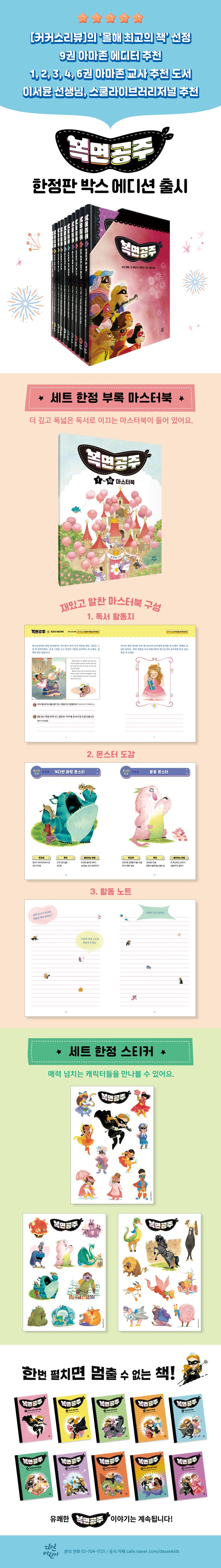 매 권 개성 넘치는 영웅과 독특한 몬스터, 신나는 모험으로 가득한 『복면공주』가 알찬 세트 구성(1~10권 도서 + 마스터북 + 스티커 3장)으로 출간되었다. 세트 한정 마스터북은 독서 활동지, 몬스터 도감, 활동 노트 구성으로 더 깊고 폭넓은 독서를 유도한다. 세트 한정 스티커에서는 『복면공주』의 매력적인 캐릭터들을 만나볼 수 있다. 『복면공주』와 함께 ‘여자답게’ ‘남자답게’가 아닌 ‘나답게’ 마음껏 상상하고 성장해 보자.