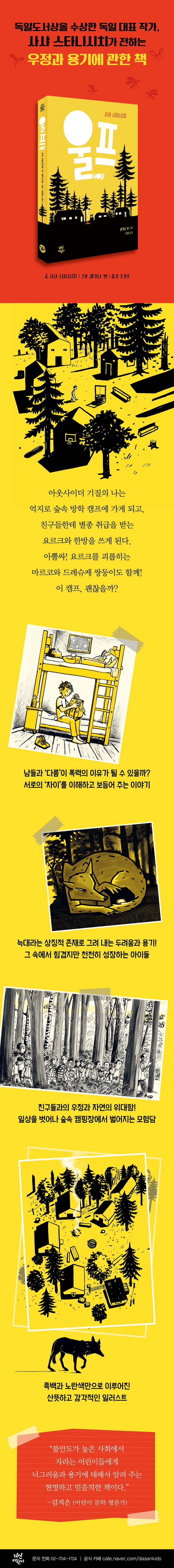 이 책의 화자이자 주인공인 나는 억지로 가게 된 일주일간의 숲속 방학 캠프에서 이런 친구 요르크를 곁에서 지켜본다. 그러면서 모른 척 피하고 싶었던 현실과 보이지 않는 폭력에 눈을 뜨게 된다. 실은 나 또한 또래보다 조숙하고 매사에 불평이 많다는 이유로 반에서 아웃사이더처럼 지내고 있다. 요르크와 마찬가지로 별종 취급을 받는 것이다. 다른 건 단 하나, 요르크처럼 직접적인 폭력의 대상에서는 비껴갔다는 것!