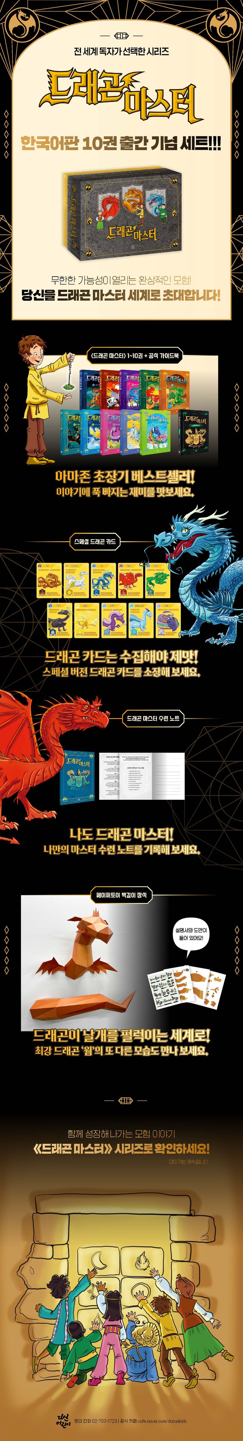 구성품에는 『드래곤 마스터』 1~10, 공식 가이드북으로 총 11권의 도서가 들어 있다. 평범한 아이가 모험을 하며 드래곤 마스터로 성장하는 이야기로, 방대한 세계관인 만큼 특색 있는 드래곤과 다양한 나라의 사람이 등장하여 한계가 없는 멋진 세계를 탐험해 볼 수 있다.