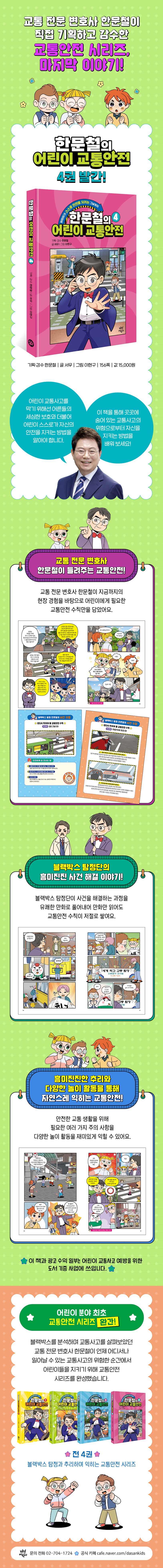 블랙박스를 통해 교통사고를 분석하며 과실 비율과 예방법을 알리고 있는 한문철 변호사가 참여한 『한문철의 어린이 교통안전』이 시리즈 마지막 권으로 돌아왔습니다. 『한문철의 어린이 교통안전』은 그간 한문철 변호사가 봐 온 수많은 교통사고 소송과 제보 영상을 토대로 어린이에게 가장 필요하고 현실적인 교통안전을 다뤘습니다.
