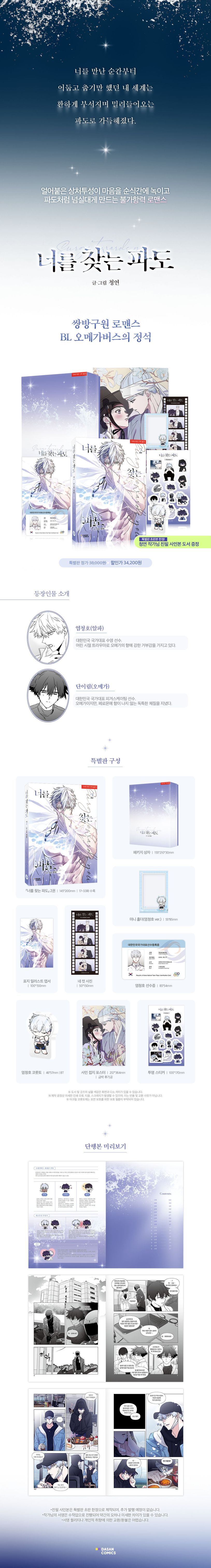 깊은 감정선과 아름다운 작화로 사랑받아 온 인기 BL 웹툰 『너를 찾는 파도』가 마침내 종이책으로 출간된다.