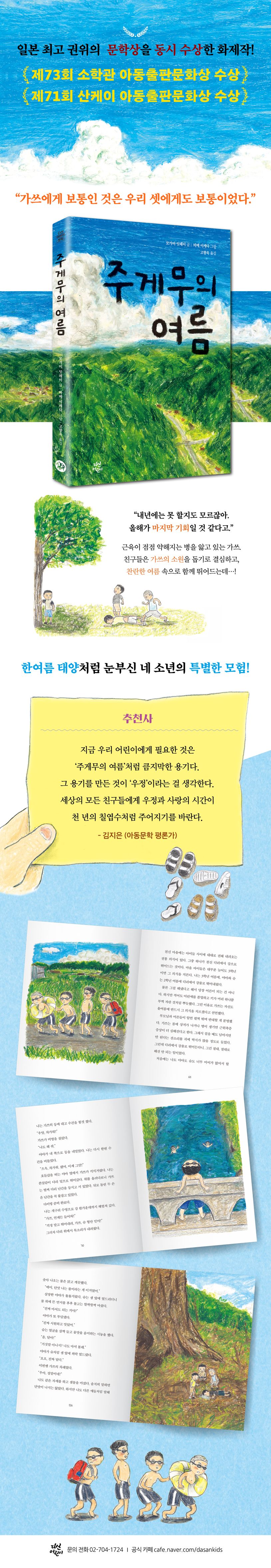‘여름’이란계절이주는고유한느낌이있다.눈부신태양,일렁이는강물,짙푸른나무들.《주게무의여름》은제목에서도알수있듯이한여름이그배경이다.천신마을에사는가쓰,야마,슈,아킨은4학년여름방학을맞아‘지금’만할수있는특별한모험을떠나기로결심한다.근육이점점약해지는근위축증을앓고있는가쓰는누구보다이번여름을손꼽아기다렸다.갈수록걷기가힘들어지는자신의상황을눈치채고친구들과소중한추억을만들고싶었기때문이다.어느곳보다여름이빨리찾아오는산골마을의자연을누비며네명의소년은다시돌아오지않을열한살여름을만끽한다.