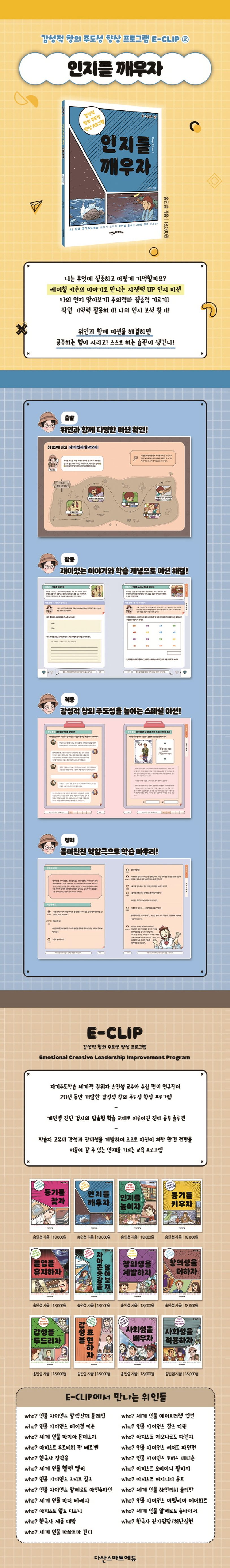 코로나가 진정되고 정상 등교를 시작하자, 아이들의 학습 격차는 극명하게 나뉘었습니다. 그 이유는 무엇일까요? 무엇을 하고 싶은지, 왜 학습해야 하는지를 아는 아이들은 스스로 공부하는 습관이 있어 자유로운 환경 속에서 쑥쑥 성장했지만, 학습 동기가 없는 아이들은 통제가 없는 환경에서는 아무것도 하지 않았기 때문입니다. 학습 격차를 줄이고 학습을 심화할 수 있는 진짜 솔루션이 바로 ‘E-CLIP’입니다. 위인과 함께 미션을 풀어나가는 열두 권의 교재와 함께라면 감성적 창의성을 높이고, 스스로 학습할 줄 아는 아이로 성장할 것입니다.