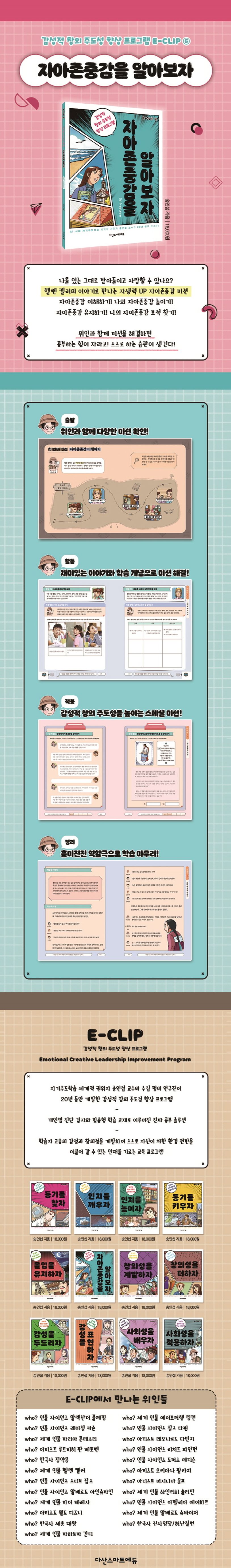 코로나가 진정되고 정상 등교를 시작하자, 아이들의 학습 격차는 극명하게 나뉘었습니다. 그 이유는 무엇일까요? 무엇을 하고 싶은지, 왜 학습해야 하는지를 아는 아이들은 스스로 공부하는 습관이 있어 자유로운 환경 속에서 쑥쑥 성장했지만, 학습 동기가 없는 아이들은 통제가 없는 환경에서는 아무것도 하지 않았기 때문입니다. 학습 격차를 줄이고 학습을 심화할 수 있는 진짜 솔루션이 바로 ‘E-CLIP’입니다. 위인과 함께 미션을 풀어나가는 열두 권의 교재와 함께라면 감성적 창의성을 높이고, 스스로 학습할 줄 아는 아이로 성장할 것입니다.