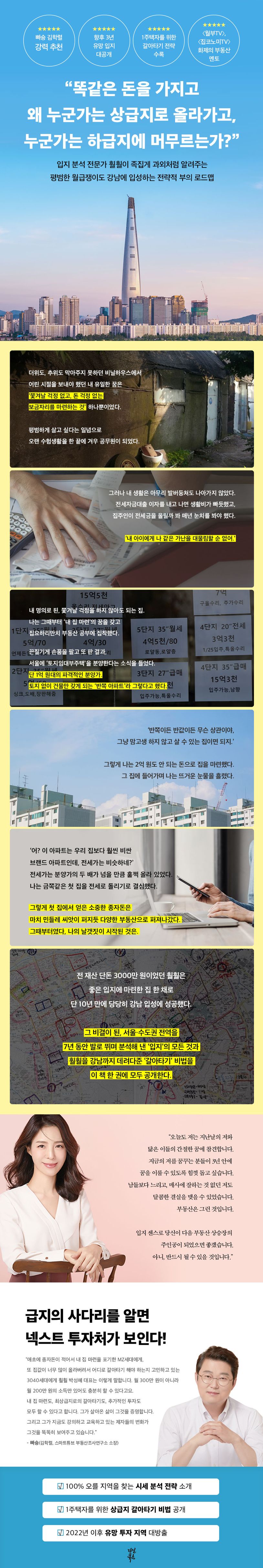 저자 훨훨은 완화 정책·대출 규제·금리 인상이라는 혼돈 속에서 더욱더 갈피를 잡지 못하고 있는 1주택자와 무주택자들에게 ‘입지’만 알아도 내 자산을 지키고 불릴 수 있다는 걸 알려주기 위해 이 책을 집필했다. 저자가 직접 첫 집을 마련하고 그 집을 활용해 갈아타기로 강남에 입성한 사례를 비롯해 입지를 통해 경제적 자유를 이뤄낸 사람들의 이야기를 읽다 보면, 적은 종자돈으로도 충분히 원하는 입지에 가 닿을 수 있다는 자신감을 얻을 수 있을 것이다. 오를 입지를 족집게처럼 골라내는 법, 고수들만 아는 갈아타기 비법과 타이밍, 한 발 더 나아가 절세 전략으로 된 사람들의 이야기가 이 책에 모두 담겨 있다.