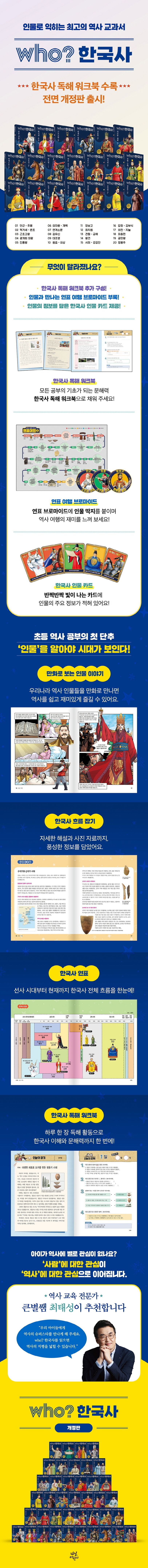 〈who? 한국사〉 시리즈는 어린이들의 한국사 학습에 실제적인 도움을 줄 수 있도록 초등학교, 중학교 역사 교과서에 들어 있는 인물을 우선적으로 선별하였으며, 교과서 핵심 키워드를 중심으로 풀어낸 학습 내용을 담았습니다.