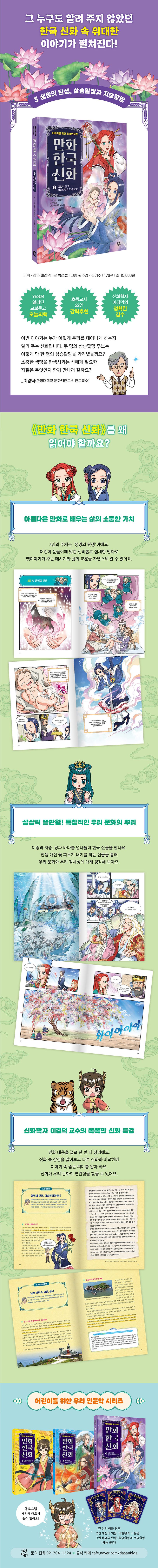 한국인이라면 반드시 알아야 할 한국 신화를 어린이 눈높이에 맞춘 재미있는 만화로 배우는 시리즈다. 어린이들은 아름답고 신비로운 그림을 보며 단숨에 책에 빠져들고, 신화학자 이경덕 교수의 정확한 감수와 해설을 접하며 우리 문화에 대한 이해를 넓힐 수 있다.