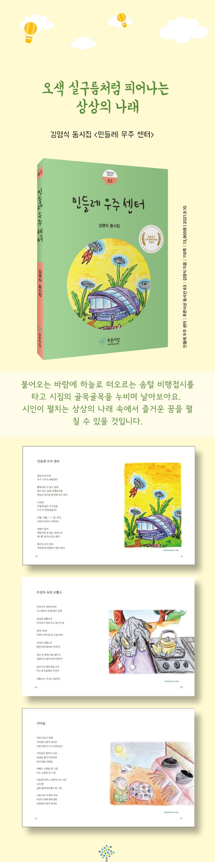 이사람 시인의 동시집 『혼자가 아니야』가 〈푸른사상 동시선 62〉로 출간되었습니다. 아이들이 자라는 동안 마음에 담아 두고 있는 고민거리들, 가족과 친구들에게서 받은 상처와 외로움을 껴안으며 시인은 치유의 노래를 부릅니다.