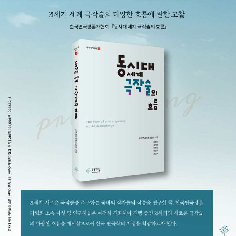 21세기 새로운 극작술을 추구하는 국내외 작가들의 작품을 연구한 한국연극평론가협회의 『동시대 세계 극작술의 흐름』이 푸른사상사의 〈연극이론총서 8〉로 출간되었다. 이 책을 통해 저자들은 여전히 진화하며 진행 중인 21세기의 새로운 극작술의 다양한 흐름을 제시함으로써 한국 연극학의 지평을 확장하고자 한다.