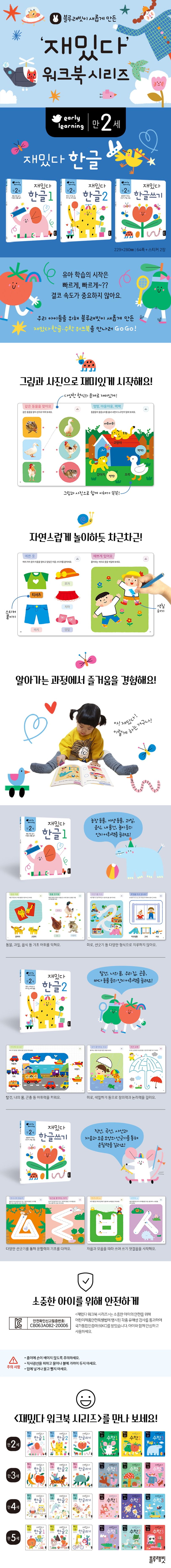 한글은 모든 교육의 중심입니다. 자신의 생각을 전달하고 정보를 받아들이는 도구이기 때문입니다. 아이가 글자에 관심을 보이기 시작할 때가 한글을 가르칠 적기입니다. 〈재밌다 한글〉은 아이가 한글에 대한 흥미를 잃지 않고 놀이하듯 재미있게 익히도록 구성하였습니다.
