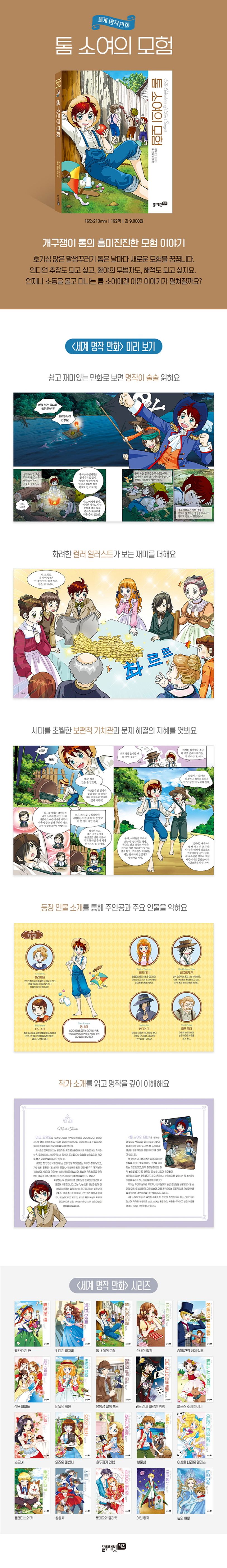 호기심 많은 말썽꾸러기 톰은 날마다 새로운 모험을 꿈꿉니다. 인디언 추장도 되고 싶고, 황야의 무법자도, 해적도 되고 싶지요. 언제나 소동을 몰고 다니는 톰 소여에게는 어떤 이야기가 펼쳐질까요? 개구쟁이 톰 소여와 단짝 허클베리 핀의 우정과 모험 이야기〈톰 소여의 모험〉을 만화로 만나 보세요.