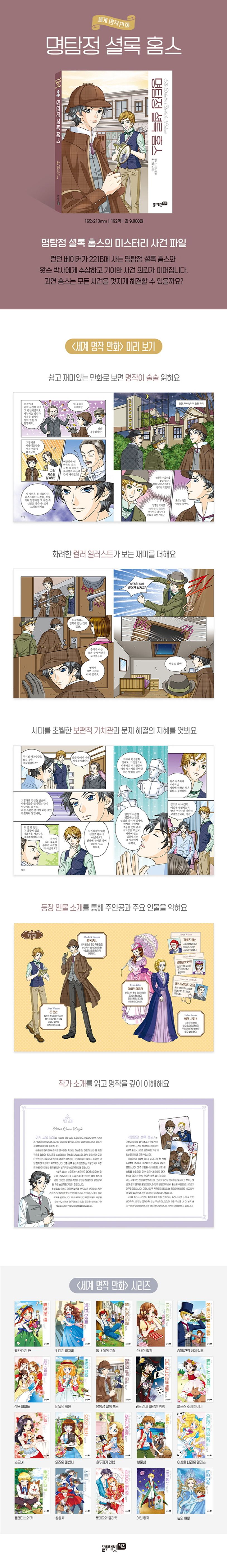 런던 베이커가 221B에 사는 명탐정 셜록 홈스와 왓슨 박사에게 수상하고 기이한 사건 의뢰가 이어집니다. 홈스는 이 모든 사건을 멋지게 해결할 수 있을까요? 명탐정의 기발하고 명쾌한 사건 해결 이야기 〈명탐정 셜록 홈스〉를 만화로 만나 보세요.